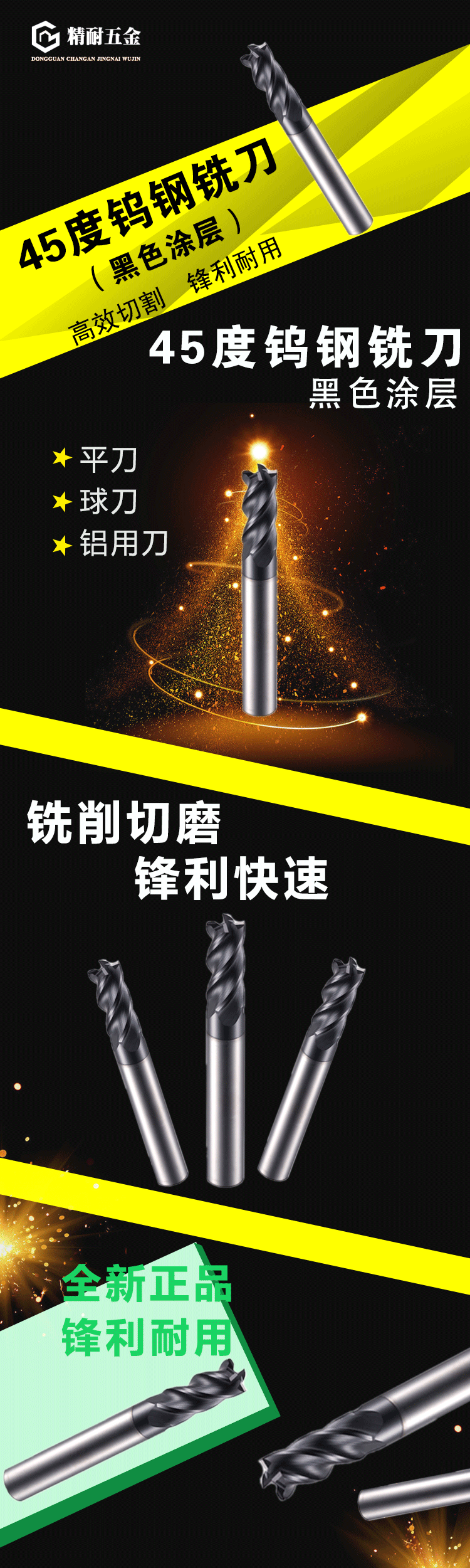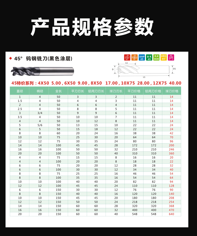 45度黑色涂層鎢鋼銑刀