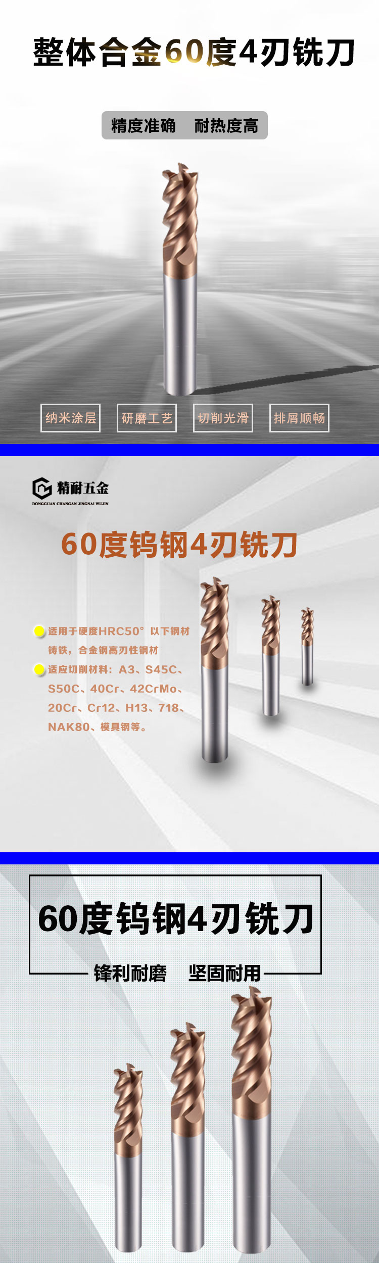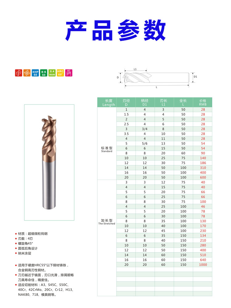 60°整體硬質(zhì)合金4刃銑刀